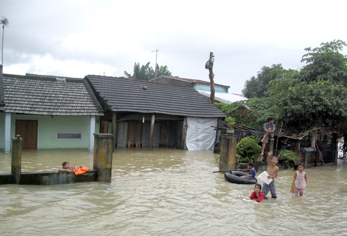Nặng nhất là tuyến đường đi vào thôn Trung Nam, xã Quế Trung, huyện Nông Sơn bị nước lũ ngập hơn nửa mét, hơn 150 hộ dân "nội bất xuất ngoại bất nhập".