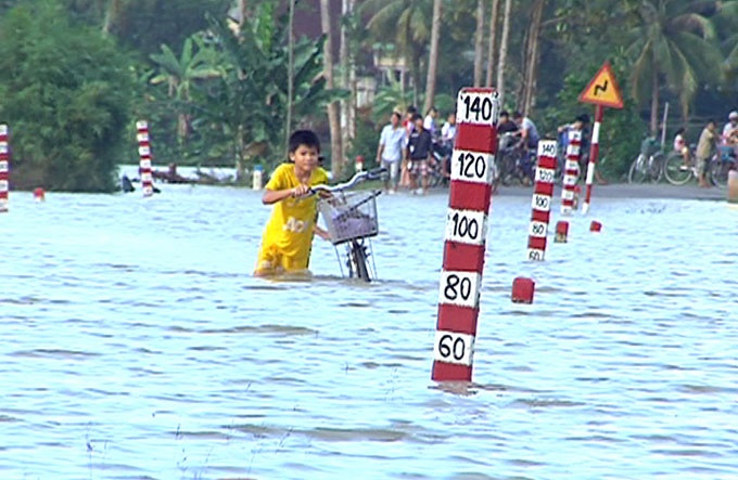 Theo dự báo Trung tâm khí tượng thủy văn Quảng Nam, tối và đêm nay mực nước các sông Vu Gia trên mức báo động 3, sông Thu Bồn trên mức báo động 2.