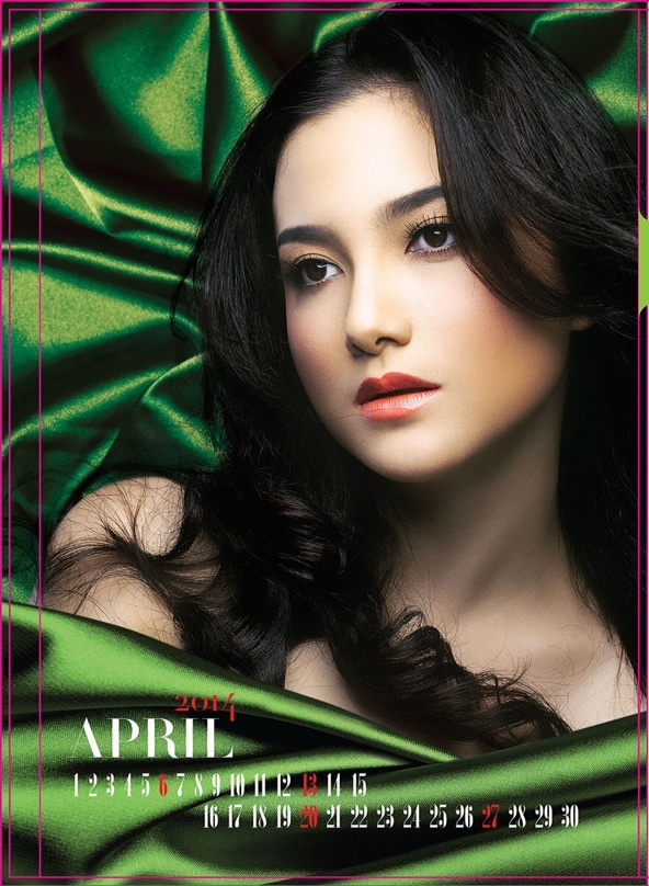 | Người mẫu trẻ Hà Kiều Trang với vẻ đẹp buồn man mác minh họa cho tháng 4. |