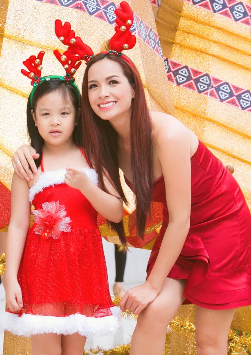 | Mẹ con Thúy Hạnh đáng yêu với kiểu bờm sừng hươu. |