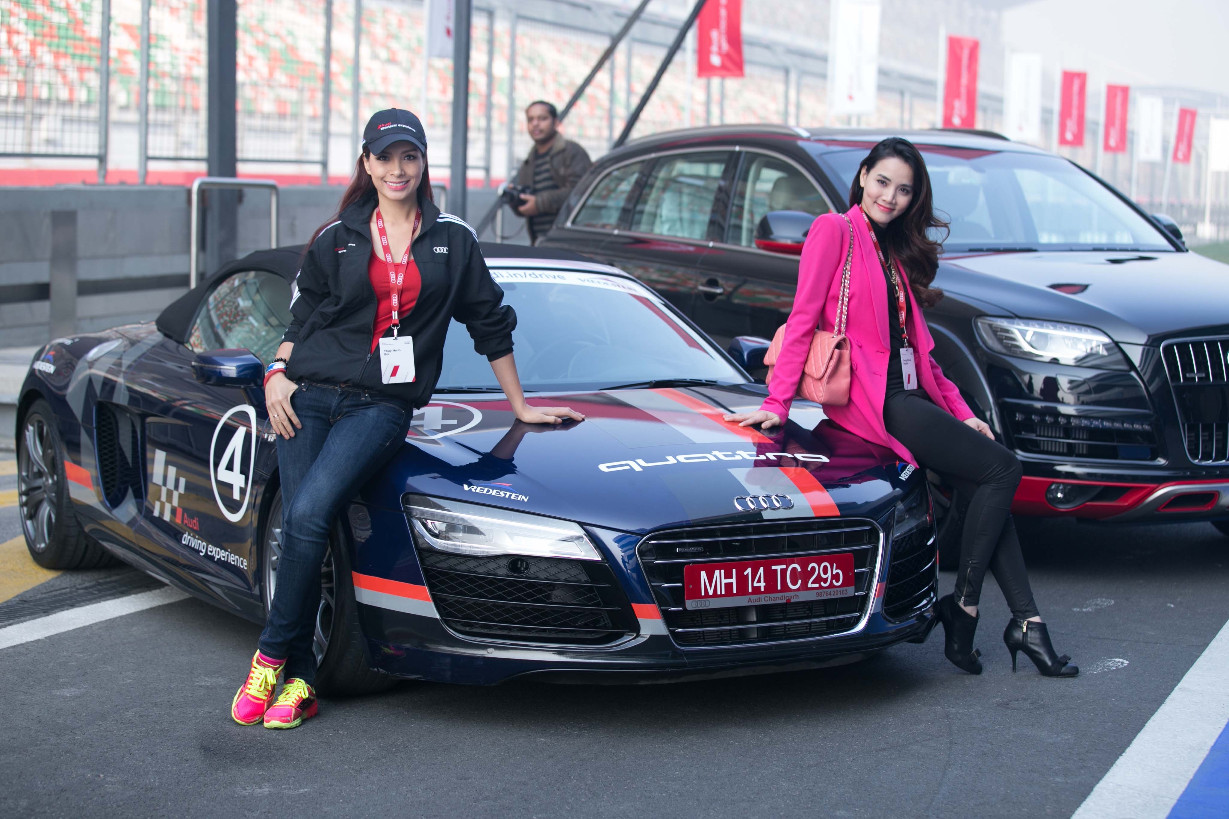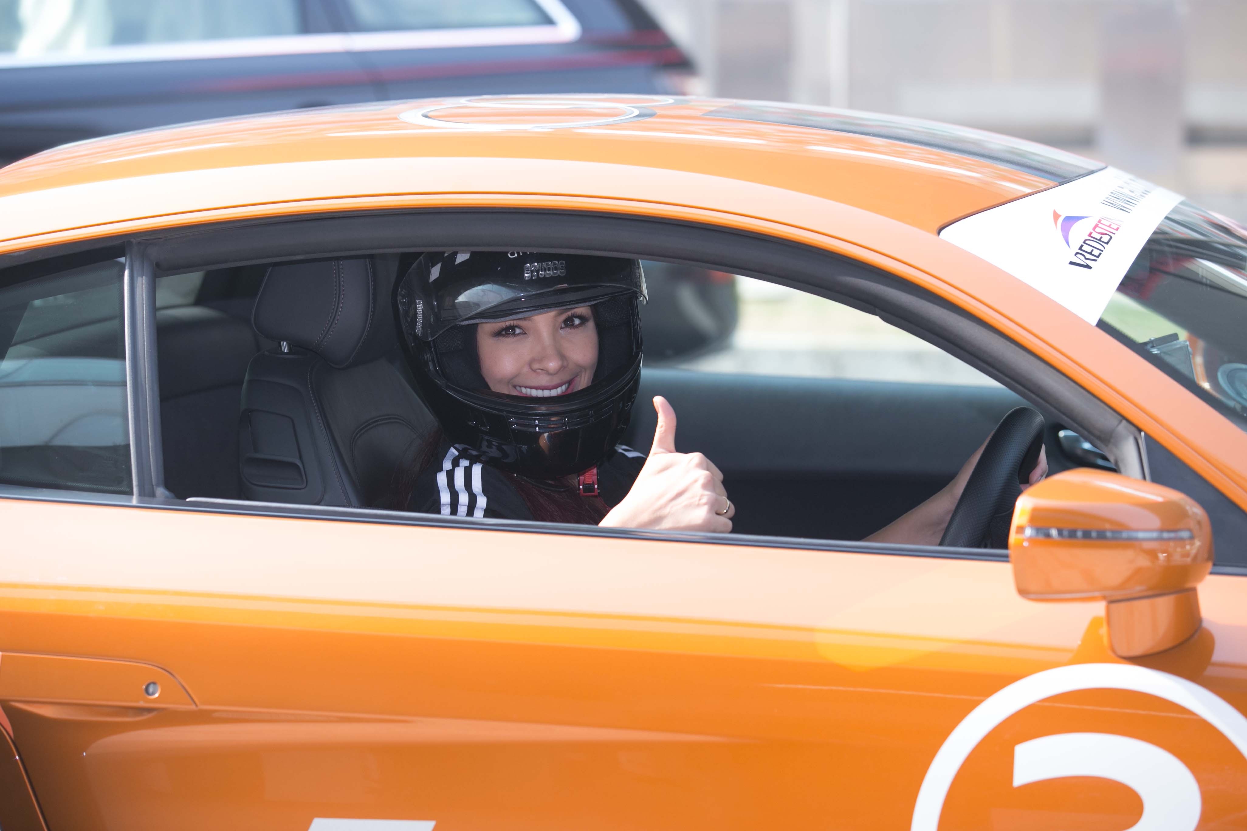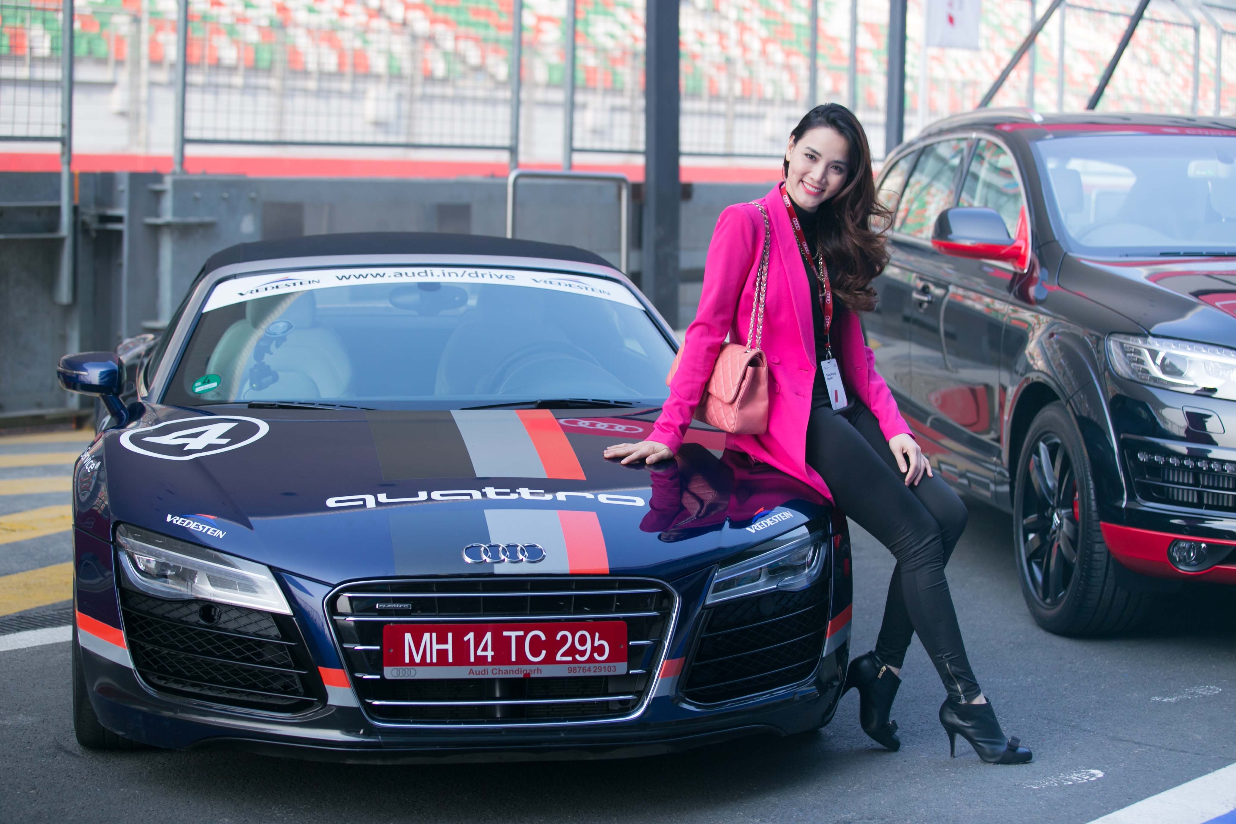 | ... Thúy Hằng còn tự tin lái thử xe tại trường đua rộng lớn ở Ấn Độ. |
