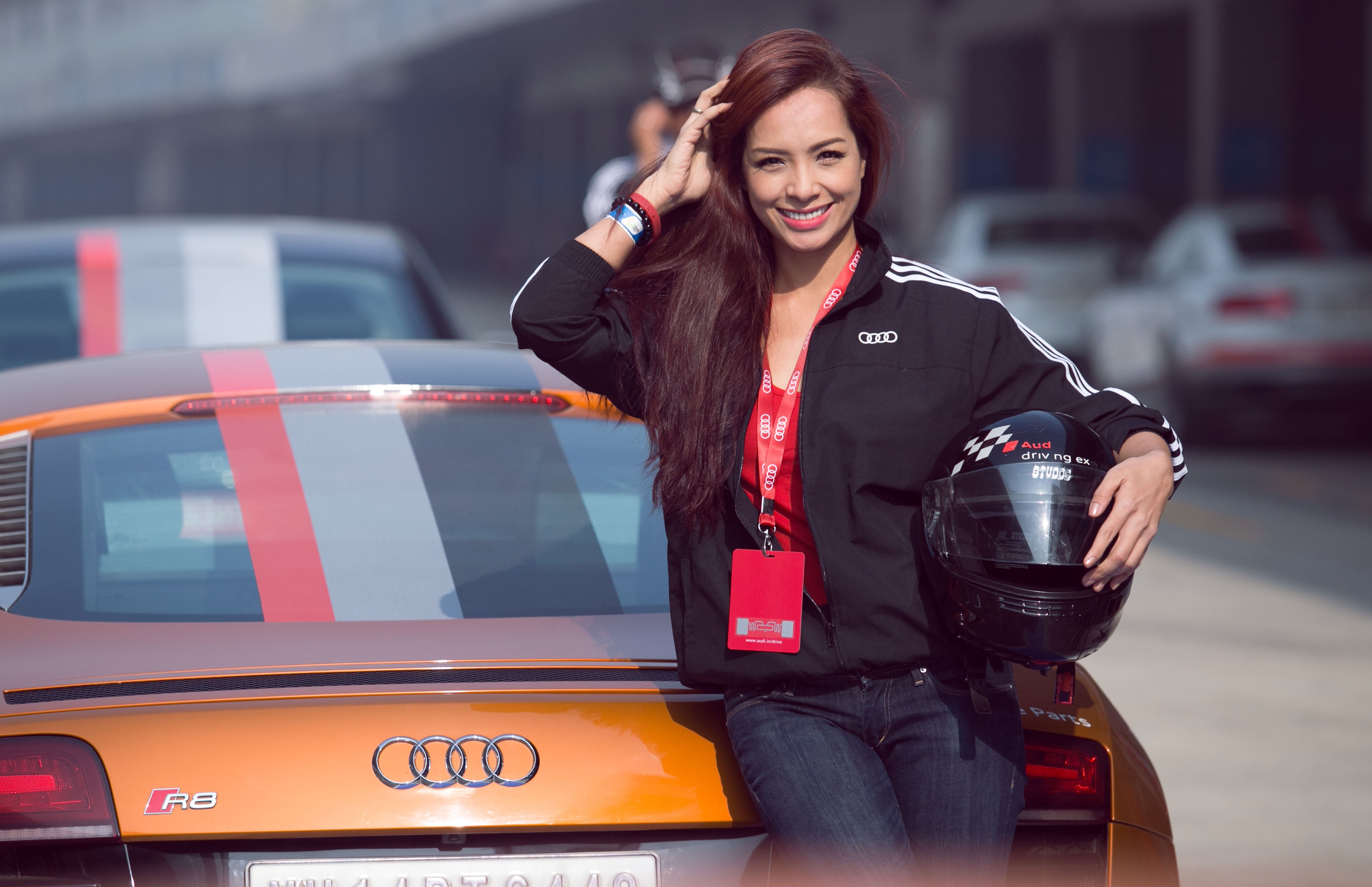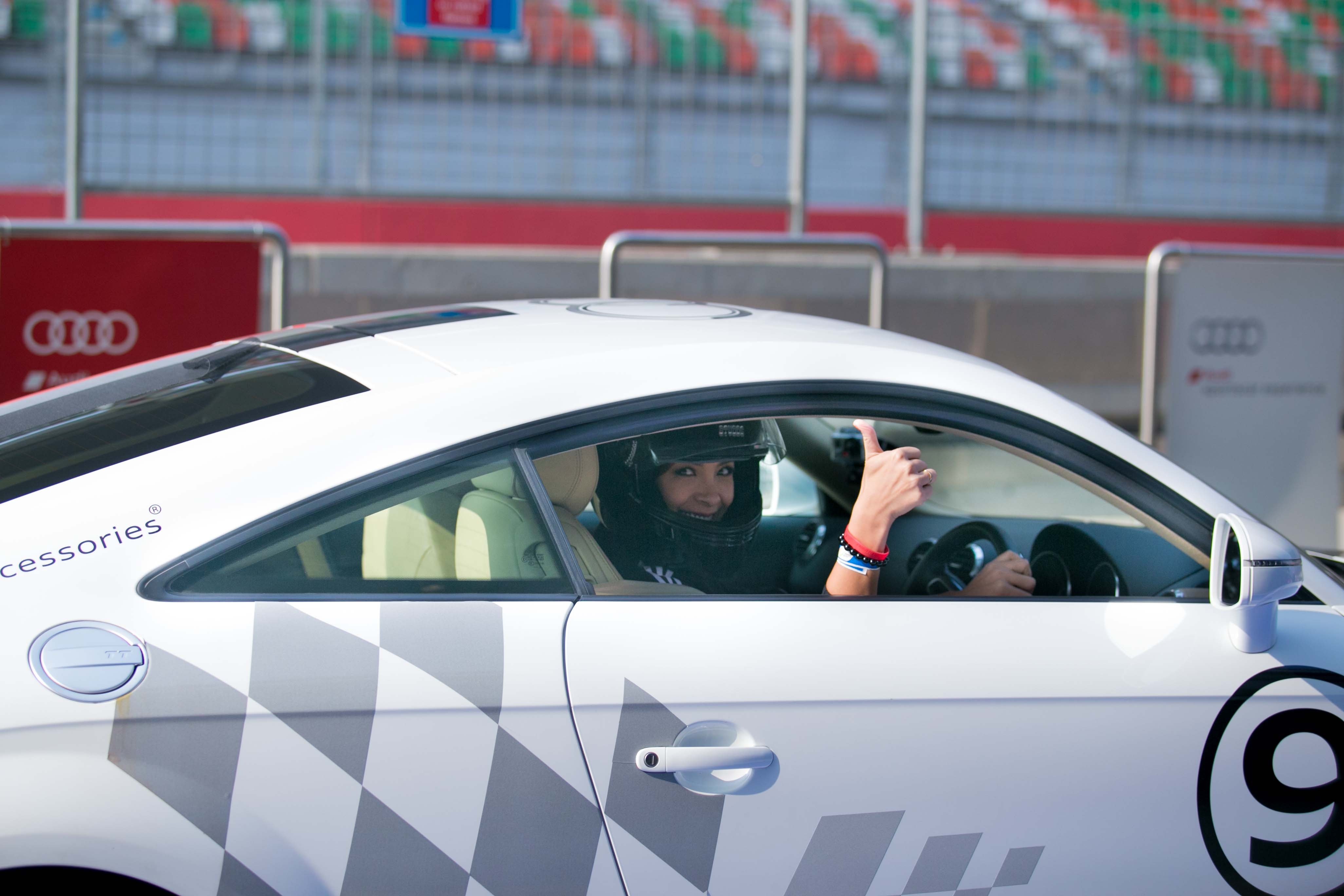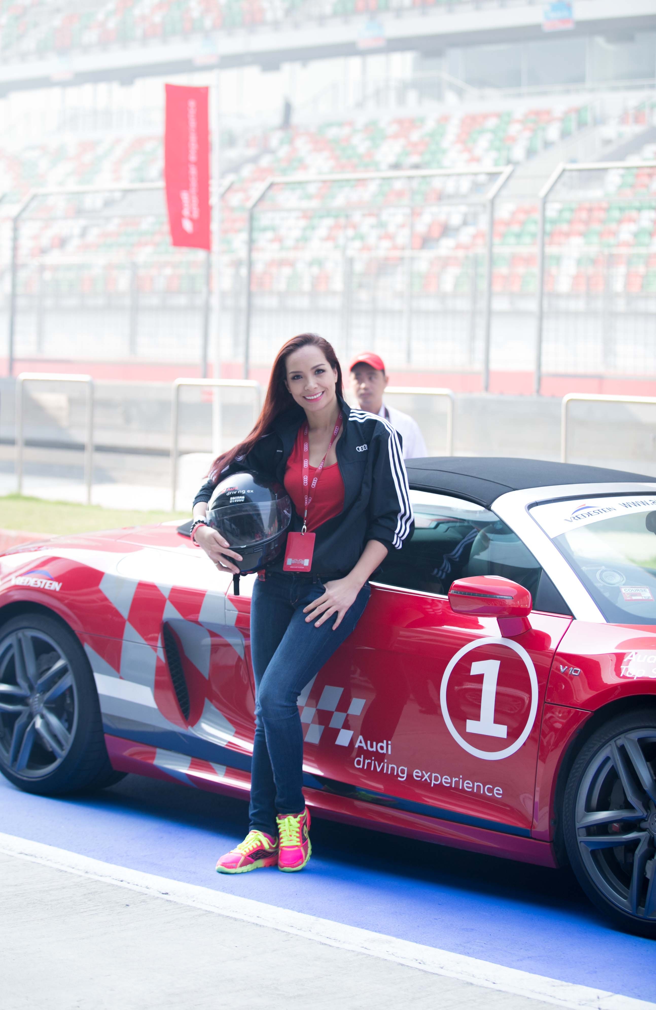 | ... Thúy Hằng còn tự tin lái thử xe tại trường đua rộng lớn ở Ấn Độ. |