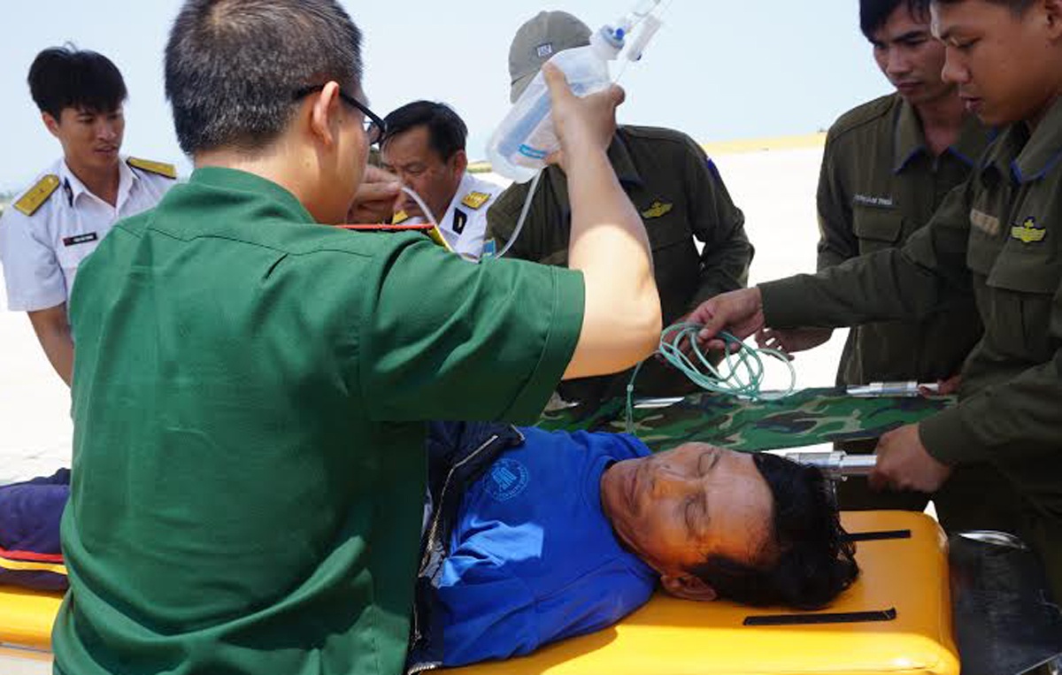 Sáng ngày 16/3, ngư dân này được đưa vào Bệnh xá đảo Trường Sa cấp cứu trong tình trạng đau buốt vùng ngực. Tại đây, các bác sĩ đo điện tim, sơ cấp cứu và báo cáo với Bệnh viện Quân y 175 TP HCM.