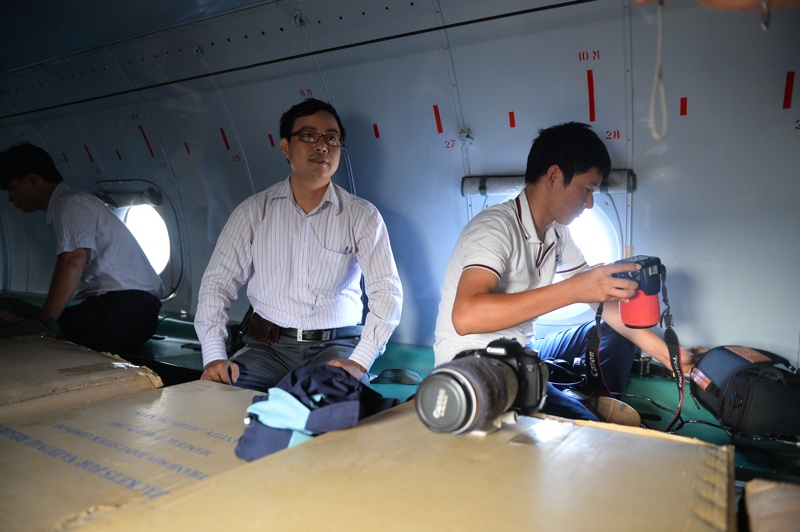 | Các phóng viên có mặt trên chuyến bay số hiệu 261 xuất phát từ sân bay Tân Sơn Nhất để tham gia tìm kiếm máy bay của hãng hàng không Malaysia mất tích (Ảnh: Hoàng Hà). |