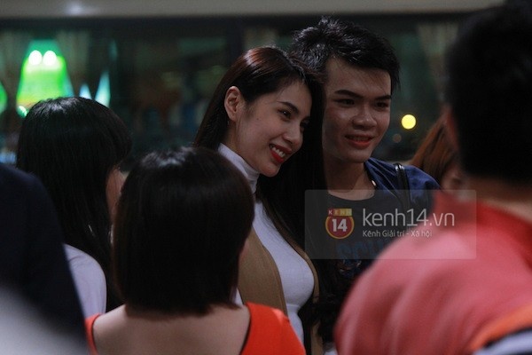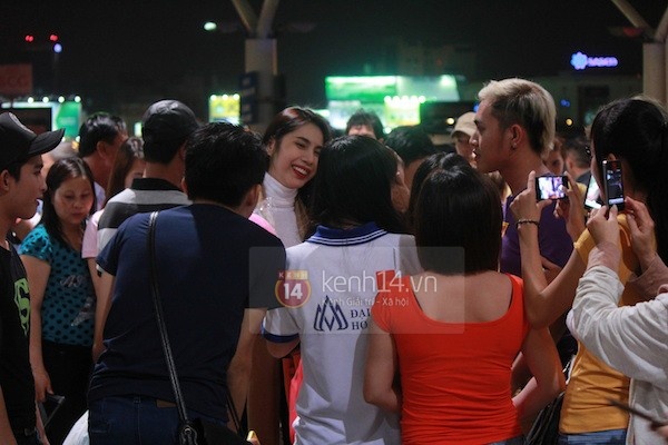Nữ ca sĩ rất bất ngờ khi được đông đảo người hâm mộ ra tận sân bay để tiễn cô sang Nhật cổ vũ Công Vinh thi đấu.