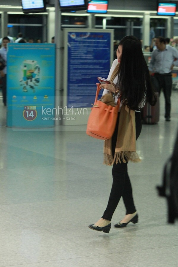 Sau đó Thủy Tiên một mình vào khu vực chờ.