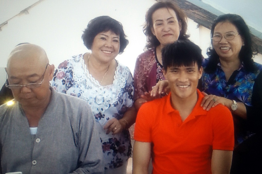 | Bà mẹ một con để mặt mộc. Cô chụp hình cùng mẹ và những người thân. Mọi người đều hào hứng chờ đợi đám cưới của cô và tiền đạo gốc Nghệ An. |