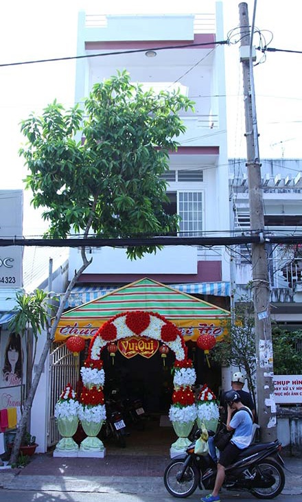 | Không khí chuẩn bị đám cưới tại nhà Thủy Tiên ở Rạch Giá. Hiện tại, rạp cưới và cổng hoa đã được dựng trước nhà nữ ca sĩ Kiss me. Chú rể Công Vinh cũng đã có mặt tại nhà riêng của vợ để chuẩn bị cho buổi lễ vào sáng mai. |