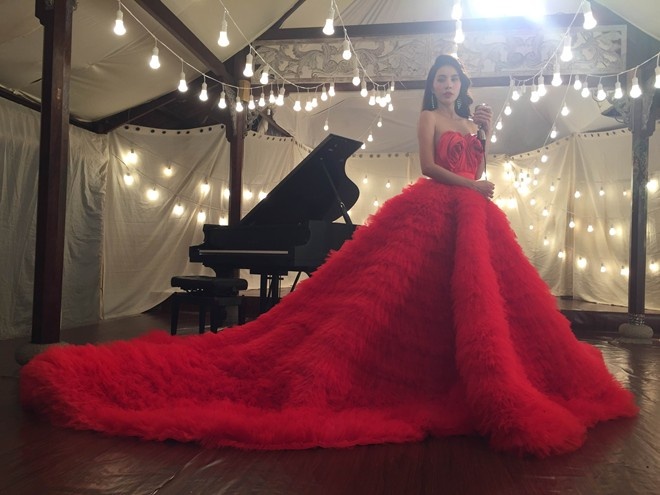 | Thủy Tiên mặc váy cưới lộng lẫy trong MV mới. |