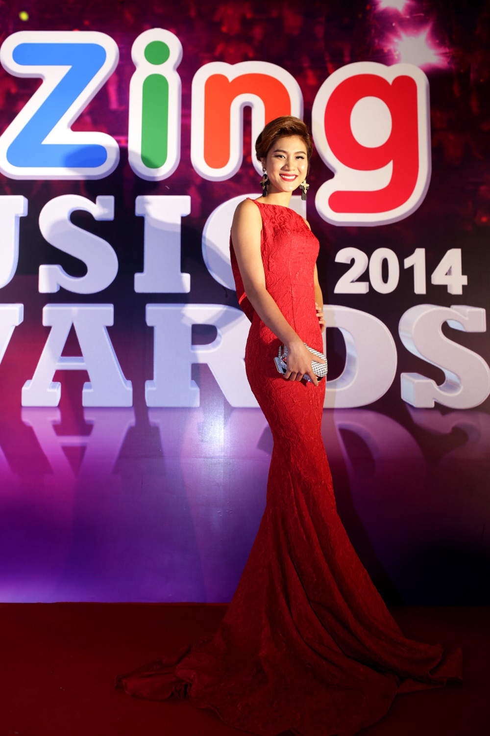 | Hoa hậu Trương Thi May nữ tính, quyến rũ và duyên dáng trên thảm đỏ Zing Music Awards. |
