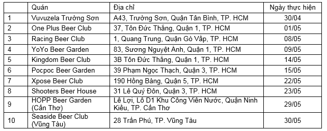 Danh sách dự kiến địa điểm tổ chức S-Party: