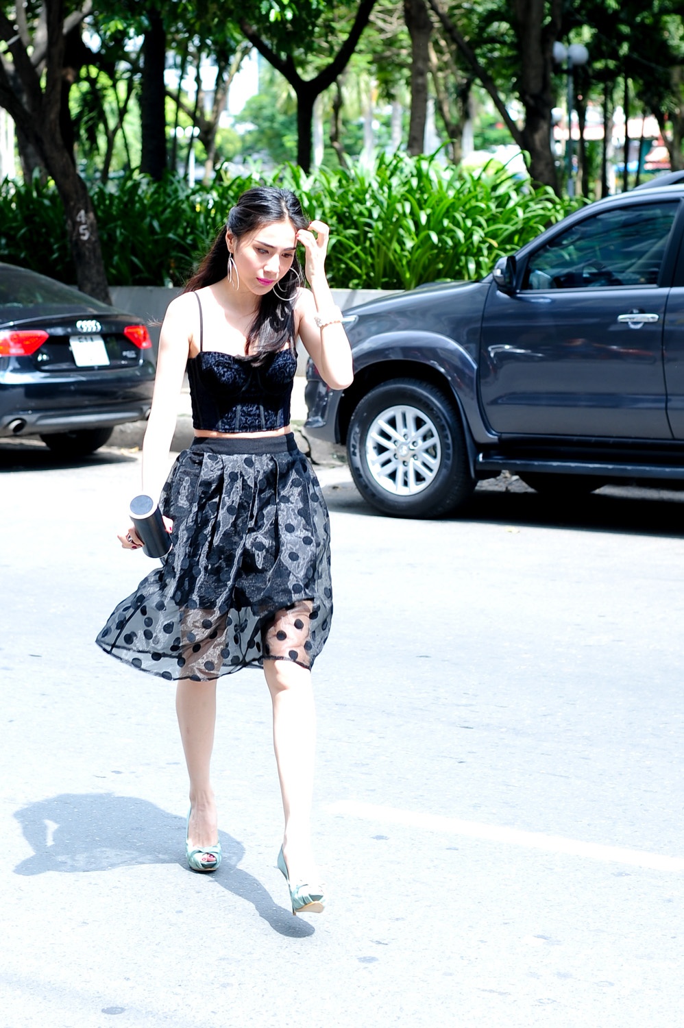 | Thủy Tiên chọn phong cách khá đơn giản nhưng rất tinh tế và quyến rũ. Chiếc áo crop top giúp nữ ca sĩ khoe được vòng eo con kiến. |
