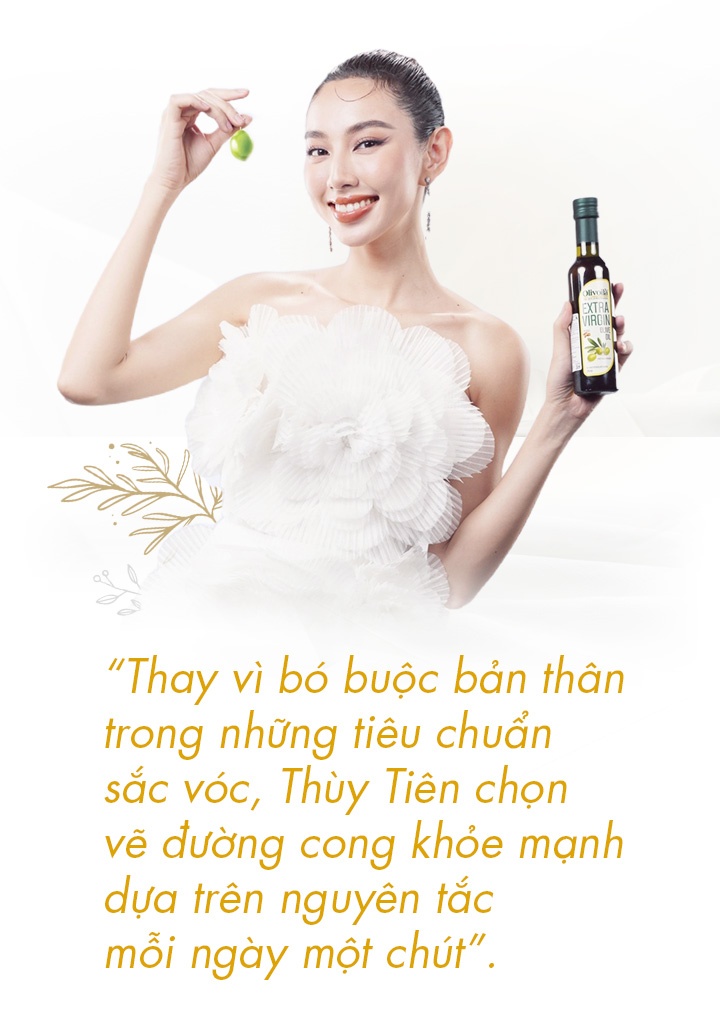 Trước khi tham gia các chiến trường nhan sắc, đã có lúc, Tiên áp lực về số đo của mình và cô nàng chọn hành trình “sống khỏe vẽ đường cong” bằng phương pháp tập luyện kết hợp ăn uống lành mạnh với dầu olive. Đó cũng là khởi đầu cho hành trình truyền cảm hứng sống đến giới trẻ của Thùy Tiên và thương hiệu dầu olive Olivoilà suốt thời gian qua.