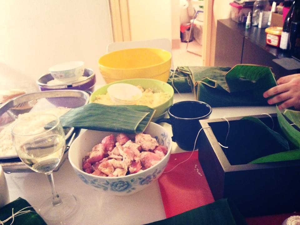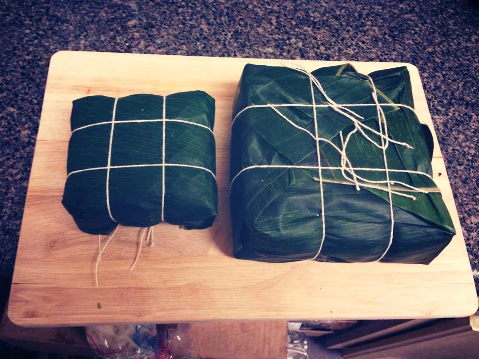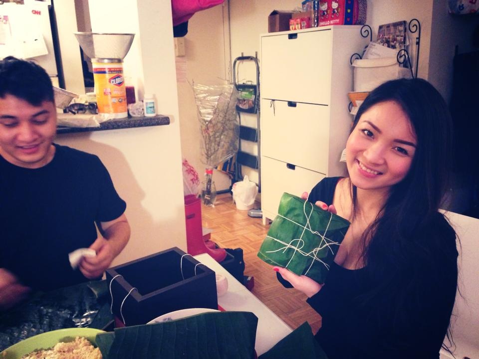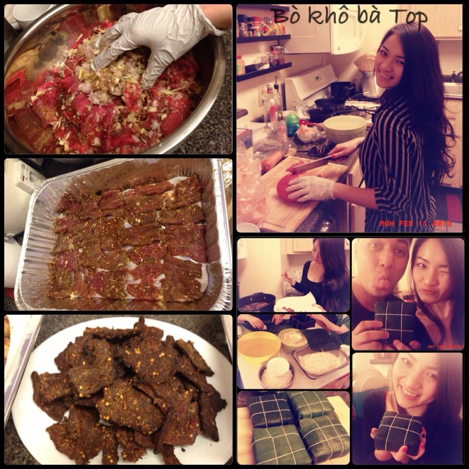 Thủy Top cùng bạn trai gói bánh chưng ở Mỹ