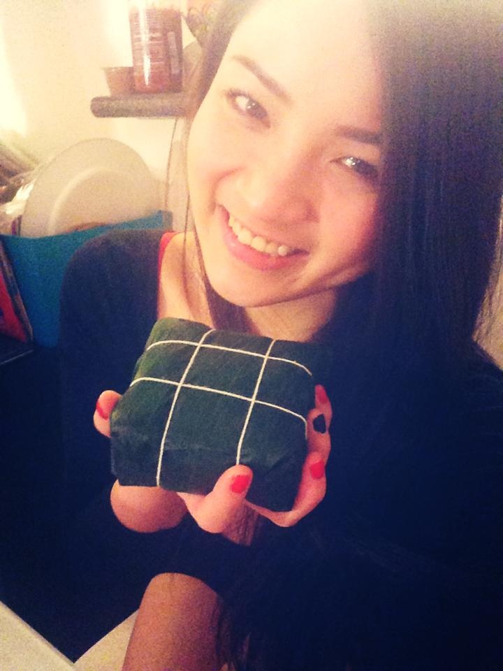 Vài giờ trước, Thủy Top chia sẻ trên trang cá nhân hình ảnh đang tất bật gói bánh chưng, chuẩn bị Tết.