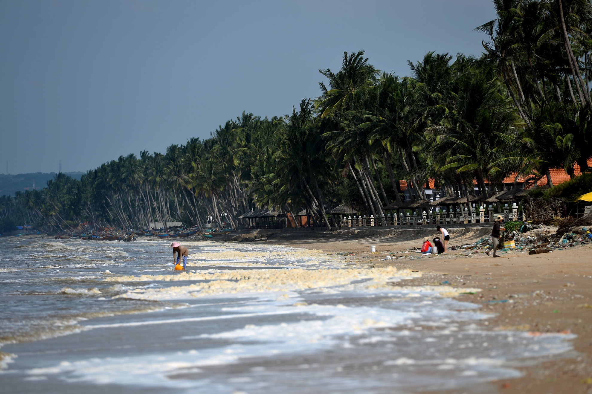 | Các bãi tắm ở Mũi Né, Phan Thiết (Bình Thuận) tê liệt nhiều ngày qua do gần bờ ngập màu đỏ vàng của bọt bẩn. Người dân nơi đây gọi chúng là "thủy triều đỏ". |