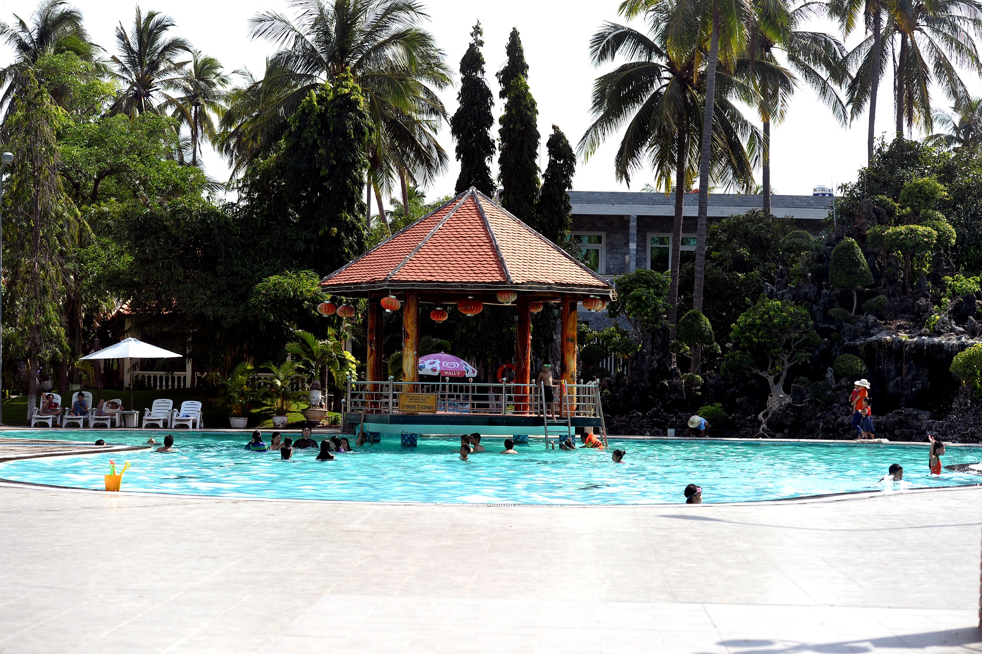 | Khách đến du lịch Mũi Né thời gian này chỉ còn cách tắm ở bể bơi. |