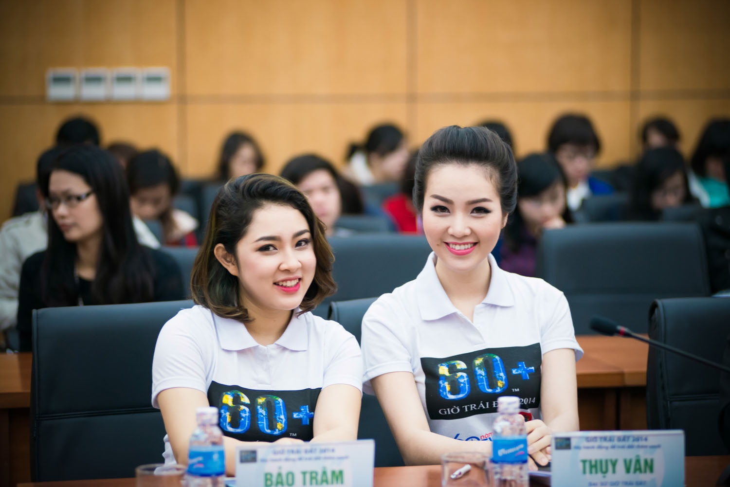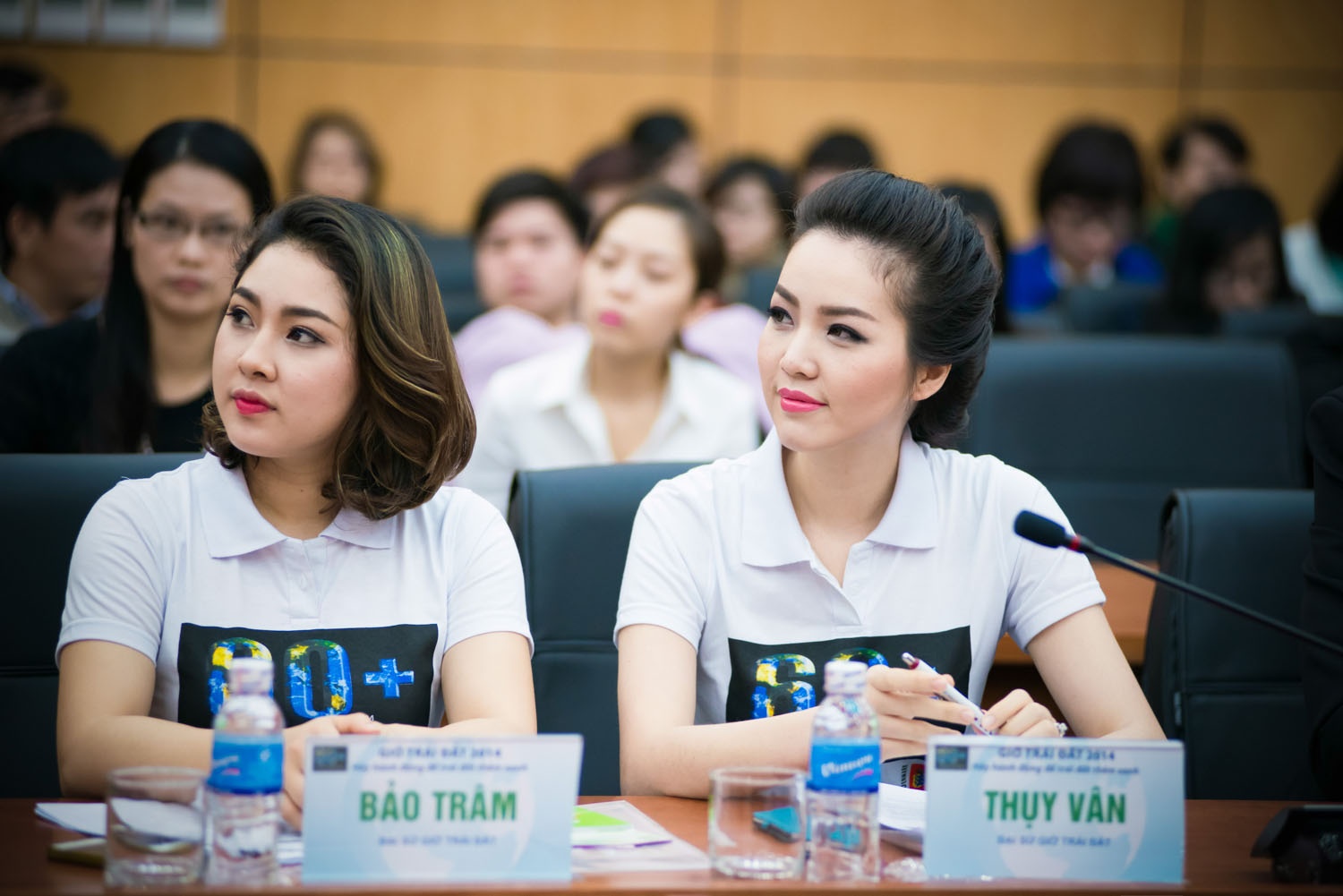 | Hôm 6/3 vừa rồi, á hậu Thụy Vân và ca sĩ Bảo Trâm đã chính thức trở thành các đại sứ của Giờ Trái đất 2014. Trong các năm trước, diva Thanh Lam, Tùng Dương hay người đẹp Dương Thùy Linh... cũng từng đảm nhận công việc này. |