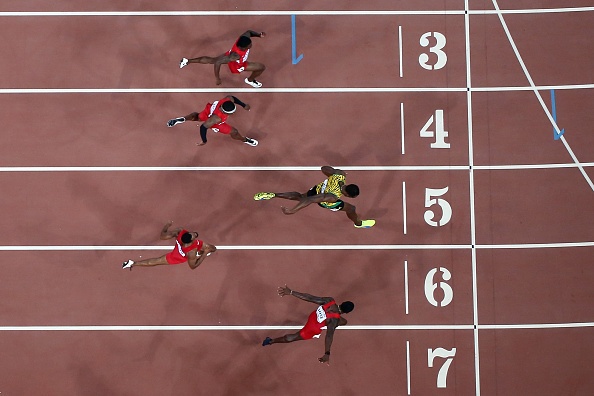 | Usain Bolt (áo vàng) tham dự giải vô địch Điền kinh thế giới 2015 tại Bắc Kinh (diễn ra từ 22-30/8) với vai trò là VĐV chạy nước rút hàng đầu thế giới. Tối 23/8, vận động viên điền kinh người Jamaica bước vào phần thi quan trọng ở nội dung chung kết 100 m. Usain Bolt vốn không có đổi thủ ở cự ly này kể từ năm 2008 đến nay. Tuy nhiên, thời gian gần đây vận động viên người Mỹ Gatlin gửi lời thách thức sẽ đánh bại Bolt ở giải thế giới. |