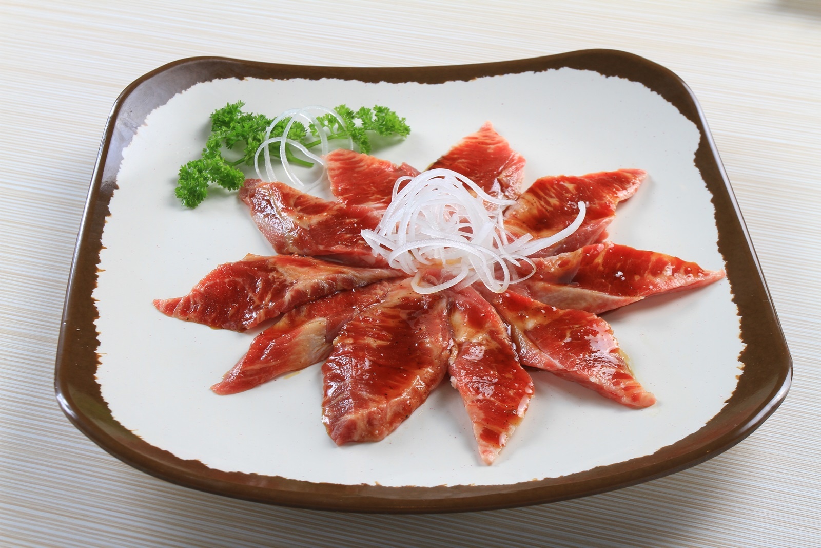 Món ăn được yêu thích nhất tại đây chính là thịt bò hảo hạng, nhập khẩu từ Mỹ. Nhờ quy trình chọn lọc, bảo quản kỹ lưỡng và chế độ nuôi dưỡng đặc biệt, thịt bò Mỹ luôn đạt tiêu chuẩn an toàn, màu sắc đẹp và hương vị mềm ngon. Kết hợp với các loại nước sốt đặc trưng Hàn Quốc, thực khách sẽ có một bữa ăn khó quên. Công thức tẩm ướp và làm nước sốt do Park Seong Min - bếp trưởng người Hàn 40 năm kinh nghiệm - đảm nhiệm.