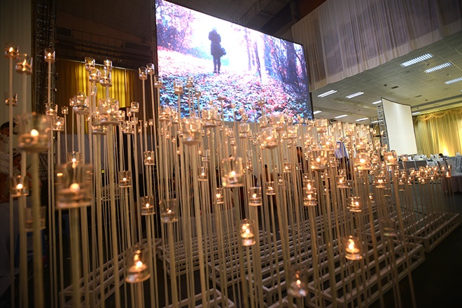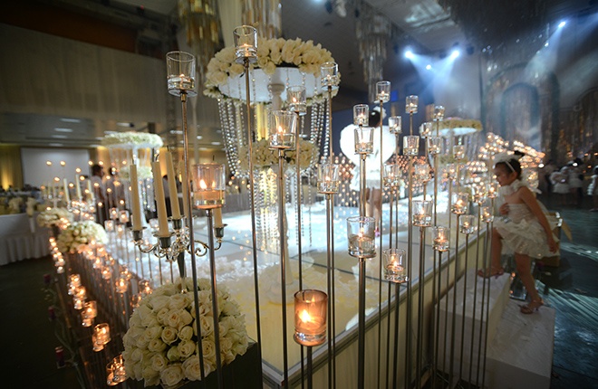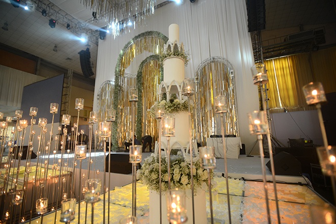 Hàng ngàn ngọn nến và hoa tươi được sử dụng trong hôn lễ của Ngọc Thạch.