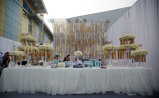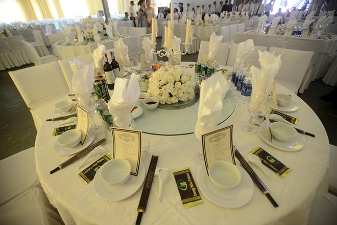 | Ngọc Thạch chuẩn bị 300 bàn tiệc cho 3.000 khách mời. Theo một số nguồn tin, mỗi bàn tiệc có giá khoảng 8 triệu đồng. |