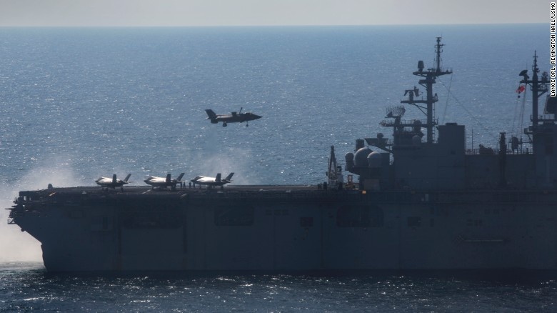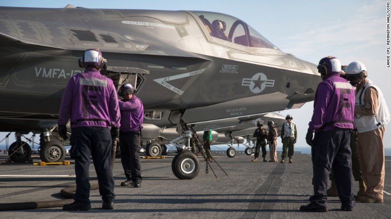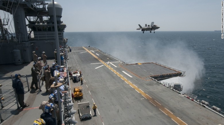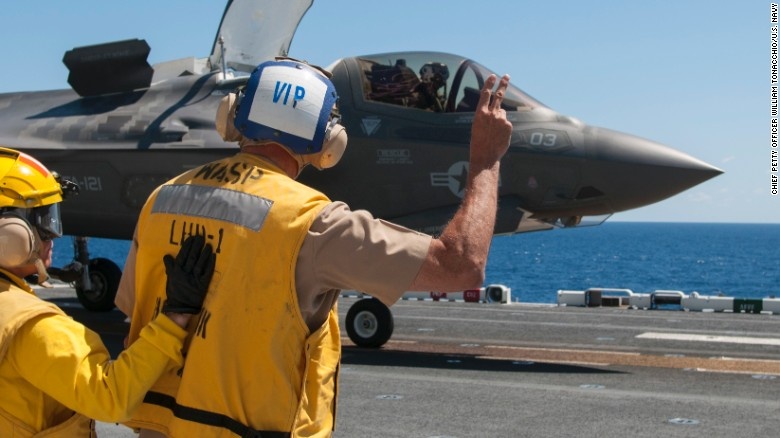 Thủy quân Lục chiến Mỹ không đồng tình với kết luận vừa được đưa ra. Trong tuyên bố chính thức, lực lượng này khẳng định: "Chúng tôi đã thành công. 2 tuần thử nghiệm trên biển cho thấy khả năng phối hợp giữa phi cơ và tàu đổ bộ cùng mọi yêu cầu khác". Thủy thủ và giám sát viên quan sát chiếc tiêm kích tàng hình F-35B Lightning II hạ cánh trên mặt sàn tàu đổ bộ tấn công USS Wasp. |