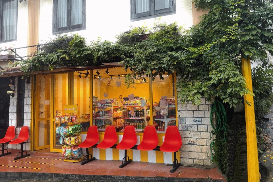 Trên con dốc Hoàng Diệu, thị xã Sa Pa, tiệm tạp hóa nhỏ bỗng thu hút sự chú ý nhờ diện mạo khác lạ so với những cửa hàng xung quanh. Không biển hiệu cầu kỳ, tiệm gây ấn tượng bằng tông vàng chủ đạo, mặt tiền kính trong suốt và dãy ghế nhựa đỏ đặt sát vỉa hè - những chi tiết quen thuộc thường thấy ở các tiệm tạp hóa, cửa hàng tiện lợi nhỏ tại Thái Lan.