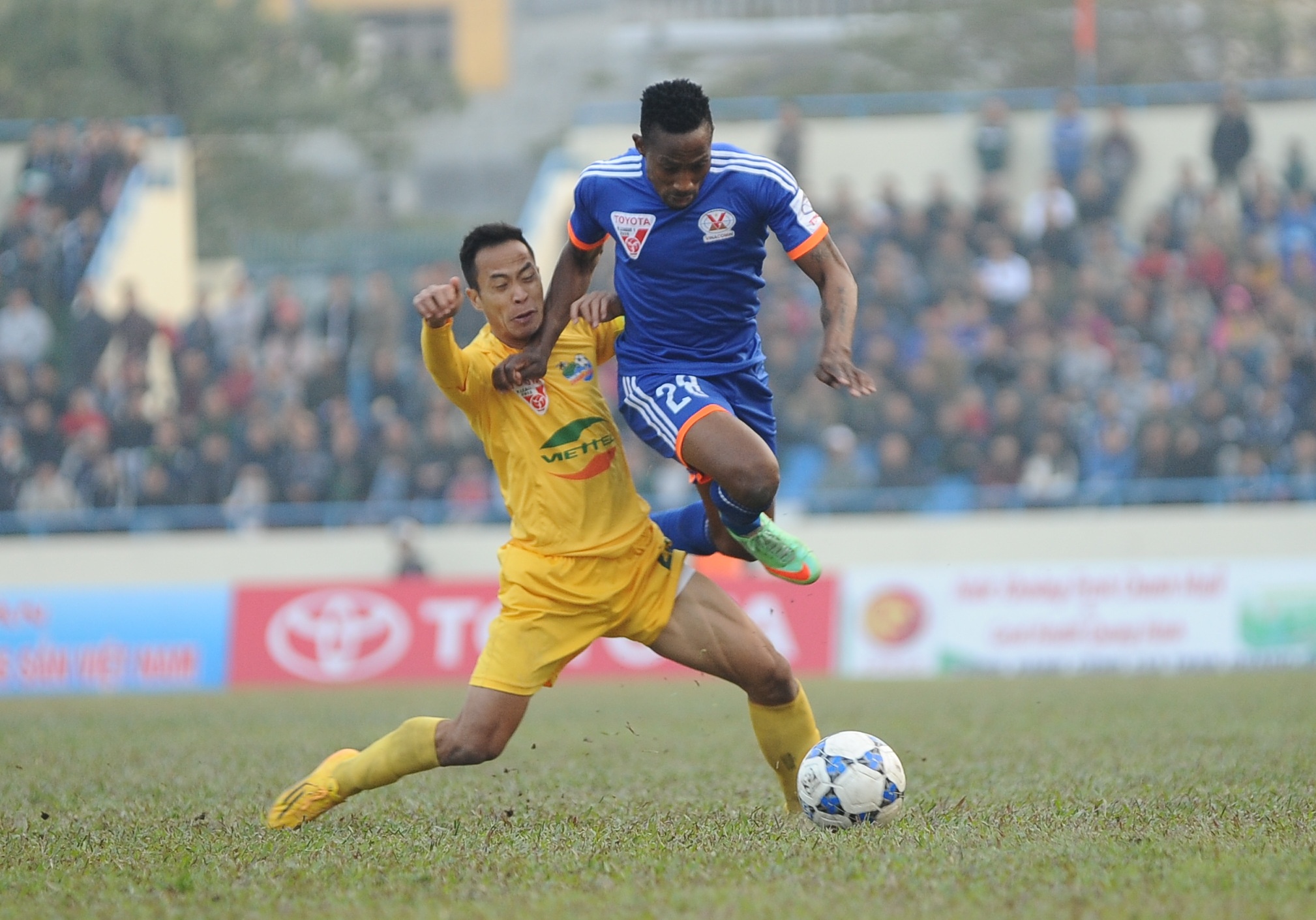 | Trận đấu giữa Than Quảng Ninh - Thanh Hoá diễn ra trên sân Cẩm Phả lúc 16h chiều 8/2. Tiền đạo Việt kiều Mạc Hồng Quân được vào sân ngay nửa đầu hiệp 1 sau tình huống Hải Huy bị chấn thương. Quân thi đấu khá năng nổ ở vị trí tiền đạo. |