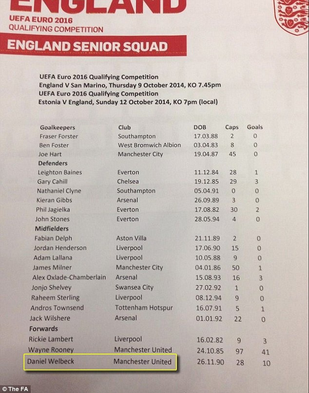 Tuy nhiên, đáng chú ý là trong danh sách mà FA vừa công bố, tên của Welbeck lại bị in sai. Không những thế, CLB mà chân sút 23 tuổi đang đầu quân cũng không đúng. Cụ thể, FA đã triệu tập cầu thủ có tên rất lạ là Daniel Welbeck của CLB Manchester United vào danh sách thi đấu đợt này.