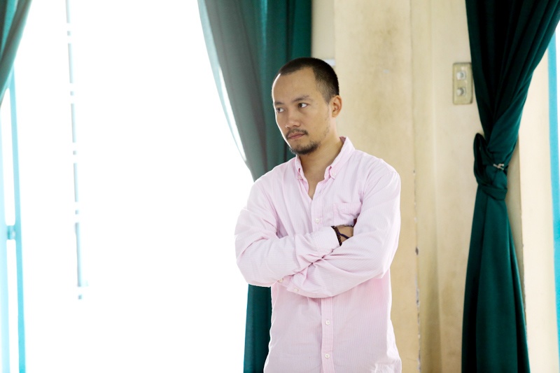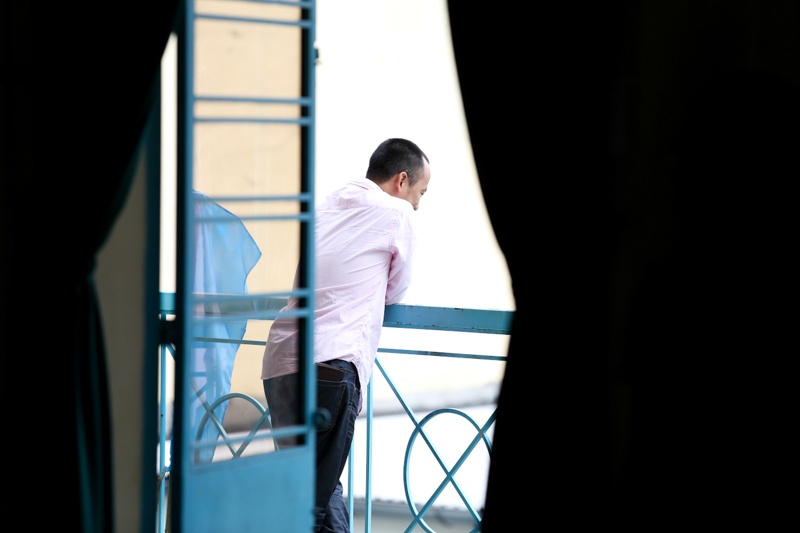 | Hình ảnh căng thẳng của Tiến Đạt khi giận bạn gái trước đó. Anh thậm chí còn bỏ ra ban công đứng một mình, mặc Hari luyện tập. |