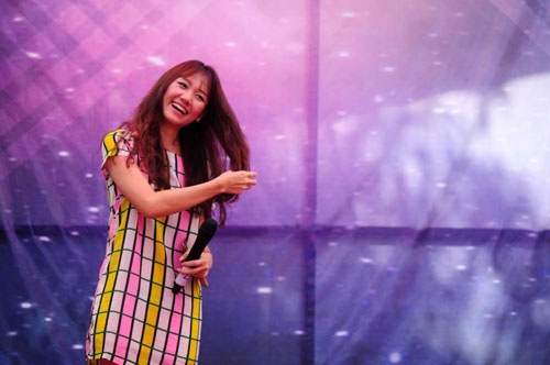 Ca sĩ Phương Vy cháy hết mình với các bạn sinh viên.