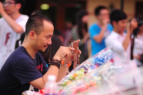 Tiến Đạt chăm chú quay lại phần biểu diễn của bạn gái.