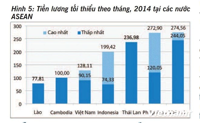 Tại hội thảo, ông Malte Luebke - Chuyên gia cao cấp về tiền lương của Văn phòng ILO khu vực Châu Á-Thái Bình Dương cho biết, không chỉ có mức lương tối thiểu thấp, mức lương bình quân của Việt Nam ở mức 3,8 triệu đồng/tháng (181 USD) cũng chỉ cao hơn Lào (119 USD), Campuchia (121 USD), và vẫn thấp hơn so với nhiều nước trong khu vực ASEAN như: Philippines (206 USD), Thái Lan (357 USD), Malaysia (609 USD), Singapore (3.547 USD).