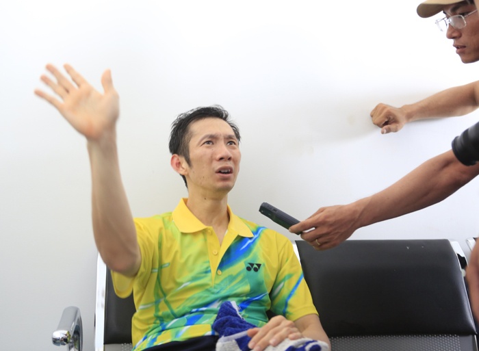 | Tiến Minh giải thích trận thua trước báo chí. |