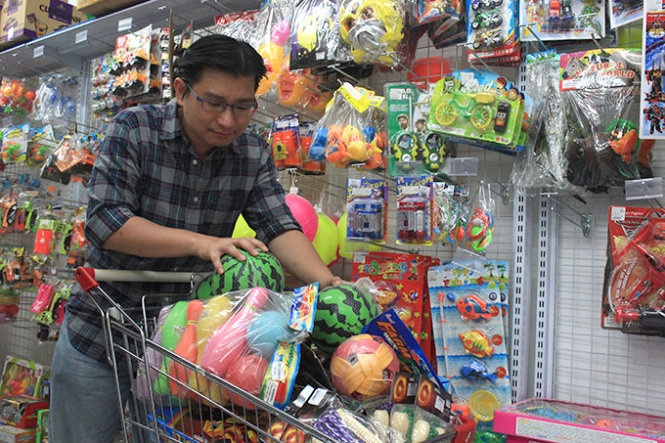 | Gabriel Kang mua sắm đồ chơi để tặng cho trẻ em mái ấm Thiên Bình, Biên Hòa, Đồng Nai tại một siêu thị thuộc quận Gò Vấp, TP HCM ngày 10/1/2015. Ảnh: Tuổi trẻ. |