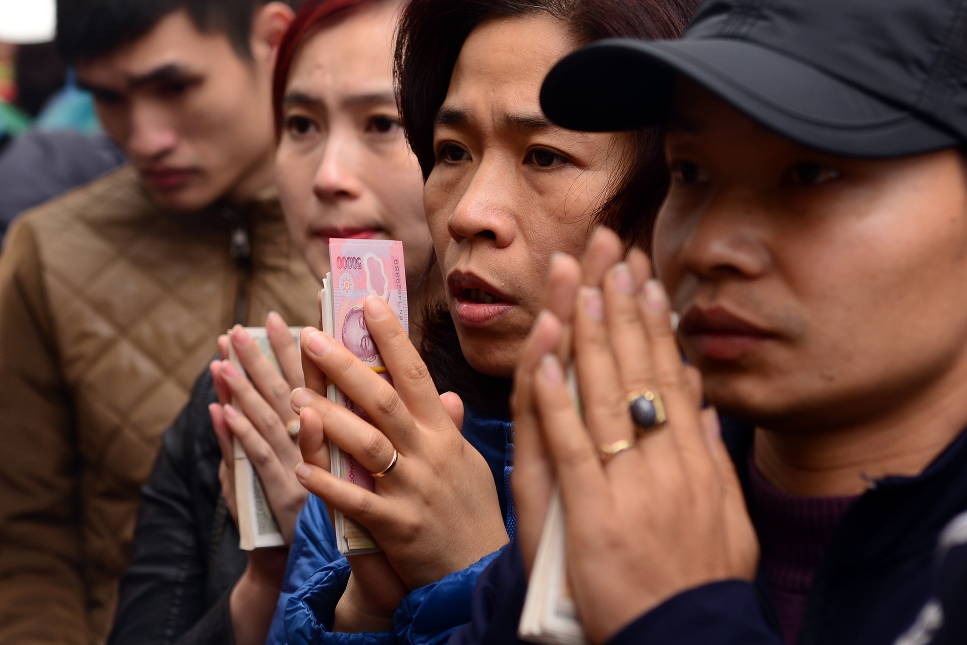 | Có người còn cầm cả xấp 100.000 đồng để đặt. |