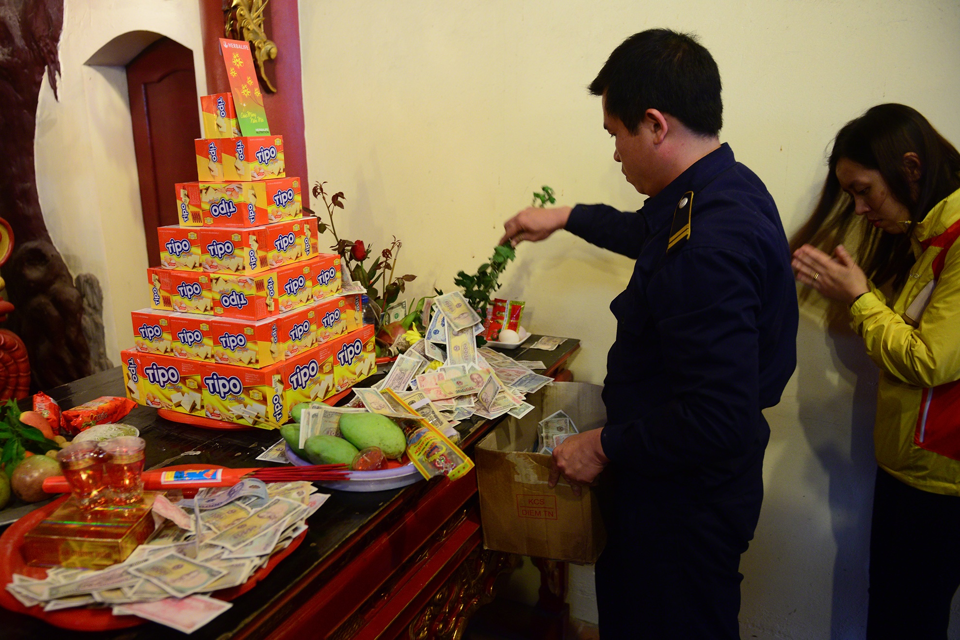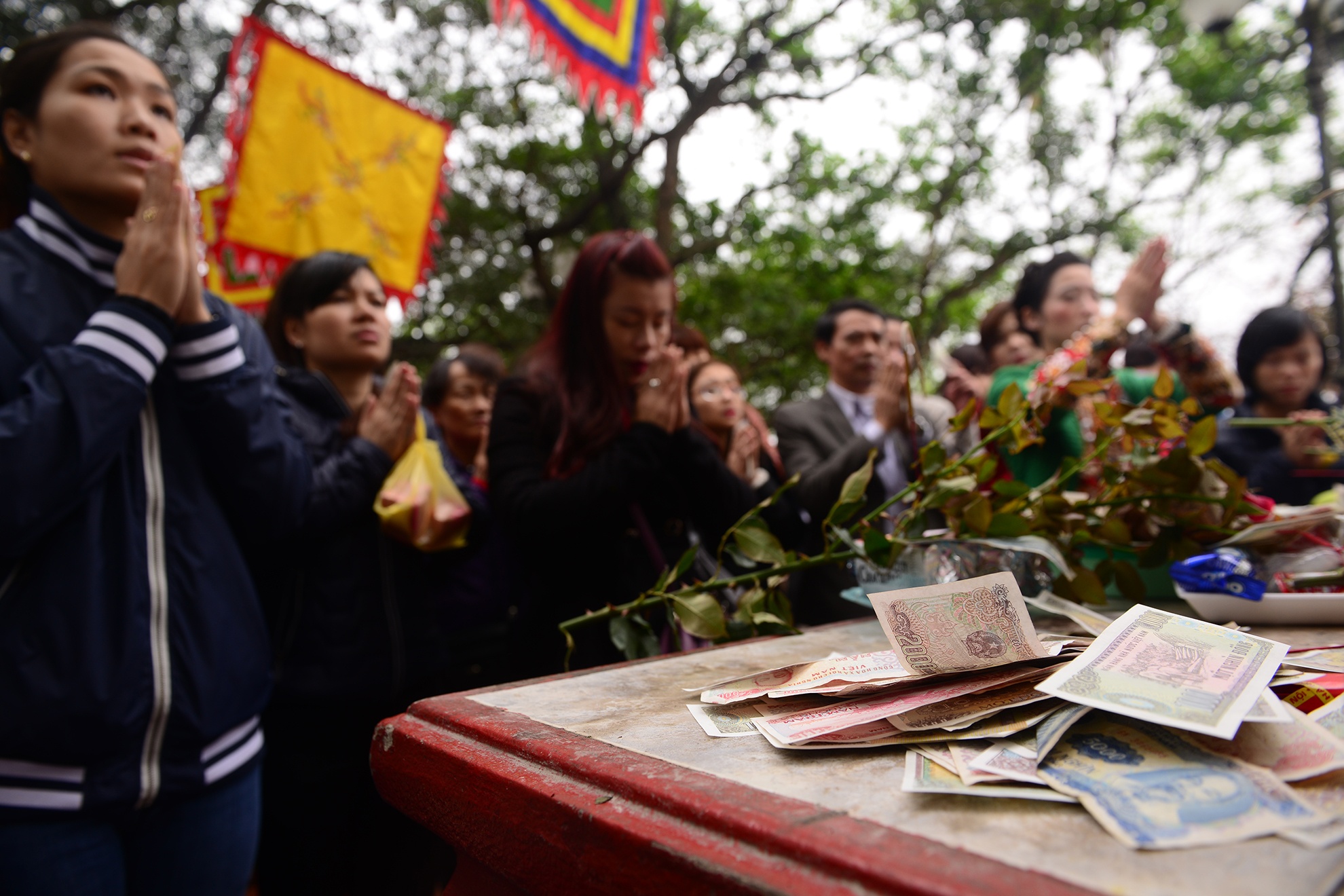 | Dù trước mỗi ban thờ trong phủ đều có hòm công đức, song hầu như mọi người đều rải tiền ngay lên trên kệ. Theo ghi nhận, các gian hàng bán đồ lễ dọc hai bên đường vào phủ năm nay không bày tiền lẻ đổi cho du khách. Tuy nhiên, khách nào vào mua đồ đều được ướm hỏi việc đổi tiền. Chủ gian hàng đáp ứng nhu cầu của khách về mọi mệnh giá. |