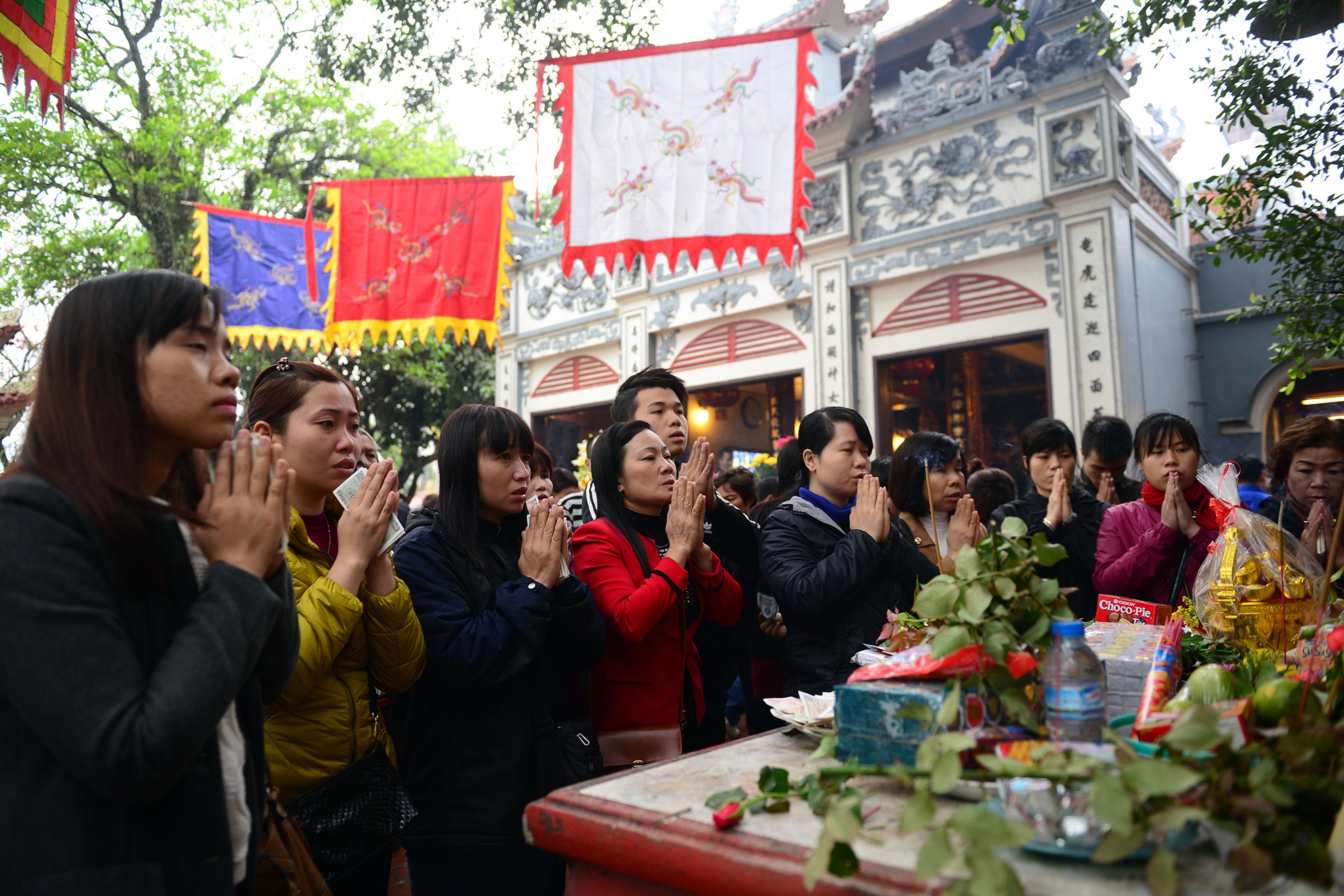 | Trưa ngày 15/1 âm lịch, hàng nghìn người dân đã đổ về lễ phủ Tây Hồ, cúng rằm tháng Giêng. |