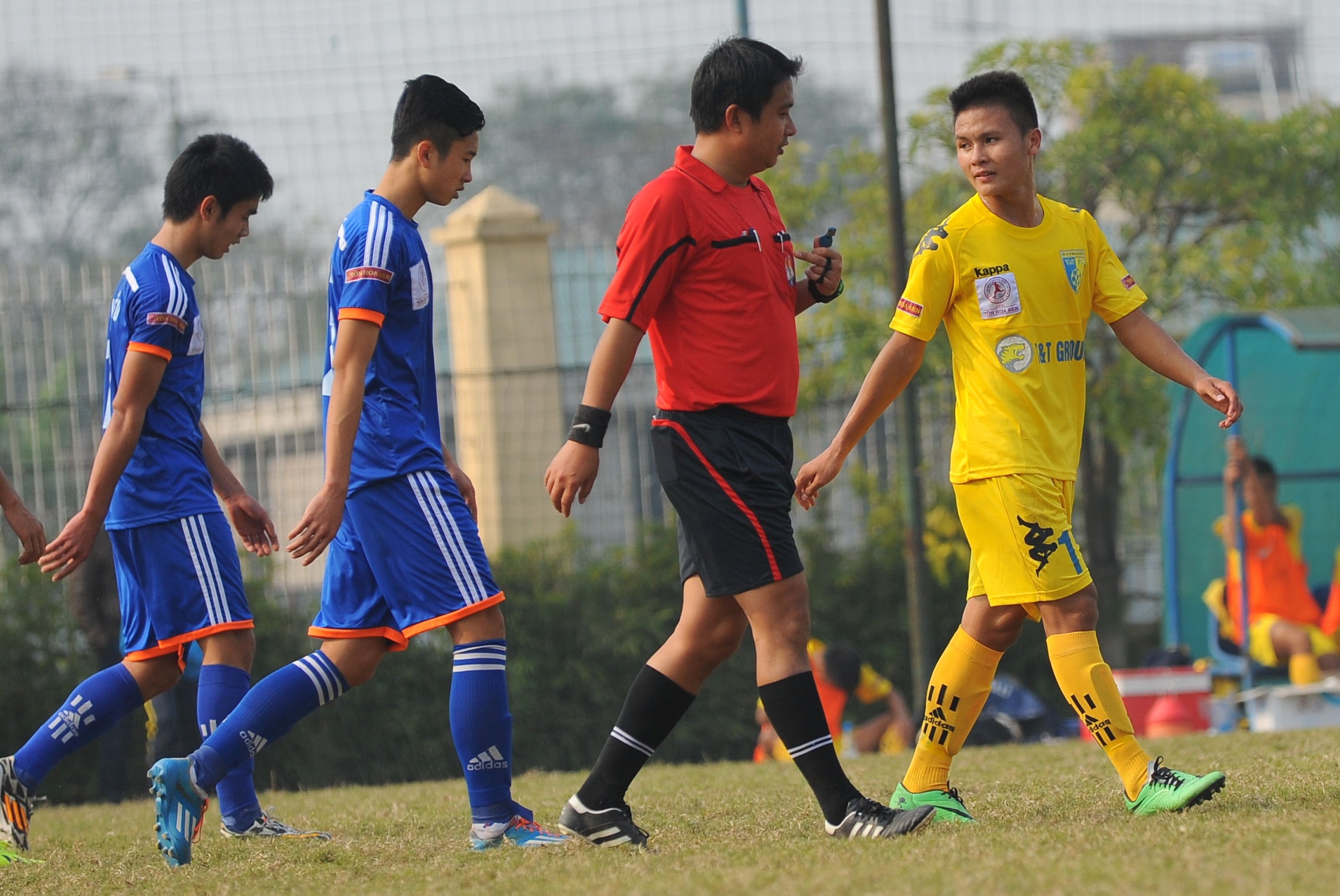 | Nửa cuối hiệp 2 của trận đấu, U19 Than Quảng Ninh chấp nhận chơi chỉ với 10 người khi một cầu thủ phải nhận thẻ đỏ do phạm lỗi với cầu thủ Hà Nội T&T. |