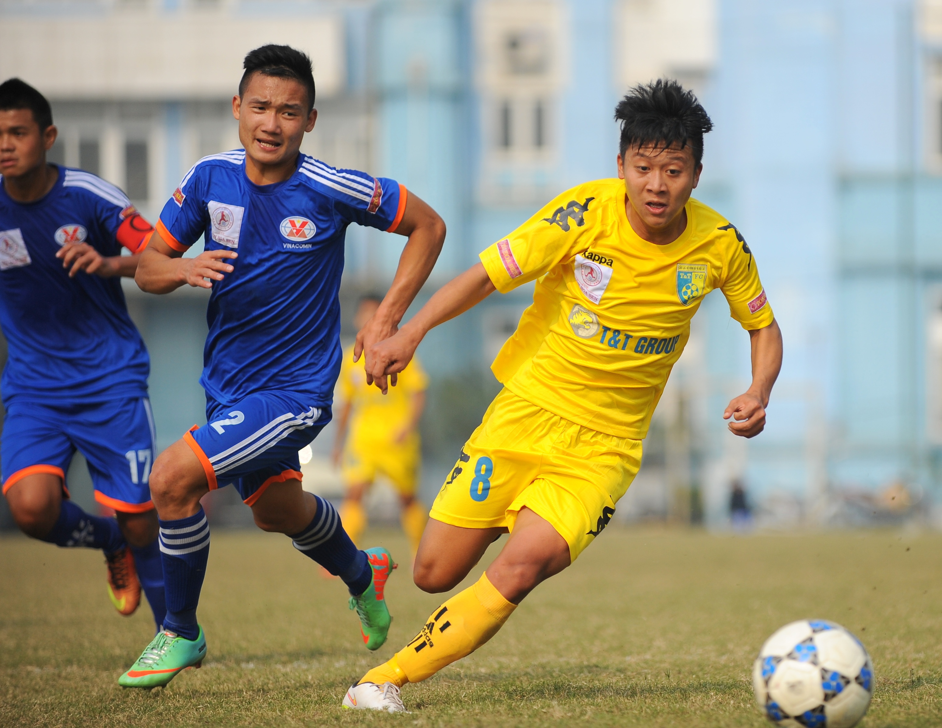 | Đội bóng đất mỏ thể hiện quyết tâm thi đấu khi chưa có được chiến thắng nào tại vòng loại giải U19 Quốc gia. Với nỗ lực của các cầu thủ trẻ, U19 Than Quảng Ninh nhanh chóng có được bàn thắng do công của Quốc Huy (trái) và Quang Huy (số 6). |