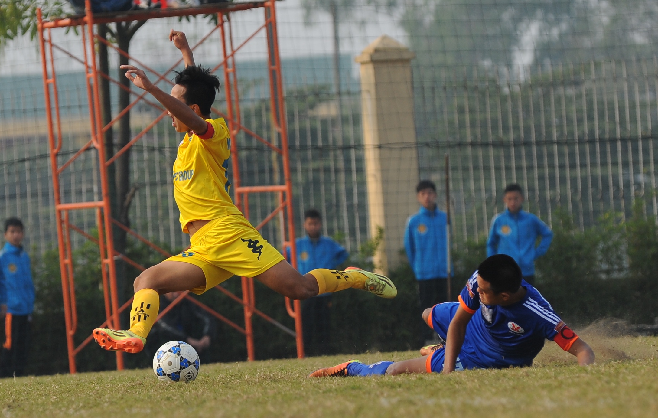 | Sau khi có 2 bàn thắng, các cầu thủ U19 Quảng Ninh chủ động chơi chắc chắn bên phần sân nhà. Các hậu vệ đội bóng đất mỏ thường xuyên có những pha vào bóng quyết liệt. |