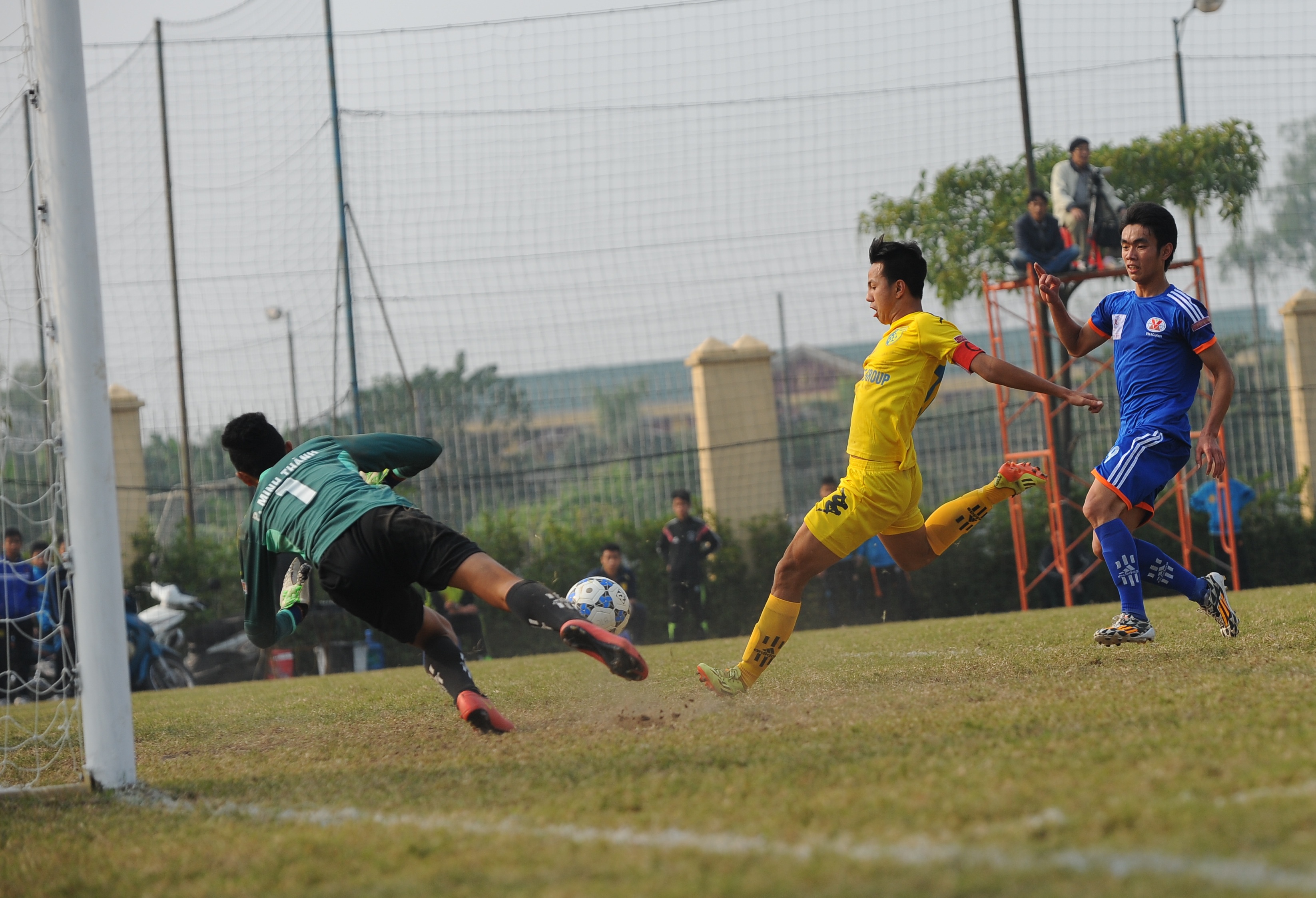 | Những nỗ lực cuối cùng của các cầu thủ Hà Nội T&T nhưng họ không thể thêm 1 lần đưa bóng vào lưới thủ môn Minh Thành của U19 Quảng Ninh. |