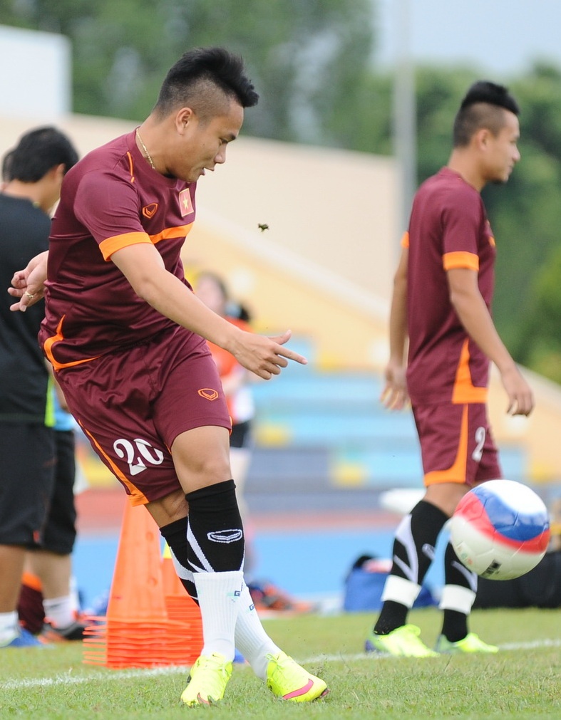 | 15h chiều 26/5, U23 Việt Nam có buổi tập trên sân Nanyang Polytechnic. HLV Miura cho các học trò chơi đùa, khởi động với bóng trước khi bước vào bài rèn chiến thuật. |