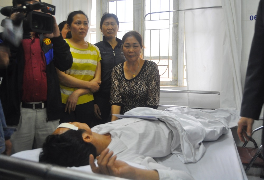Ngay sau khi người dân đưa vào viện cấp cứu, ông Phong được băng bó vết thương và nằm điều trị tại phòng cấp cứu. Hai nạn nhân bị thương nặng hơn đã được đưa về Viện 103.