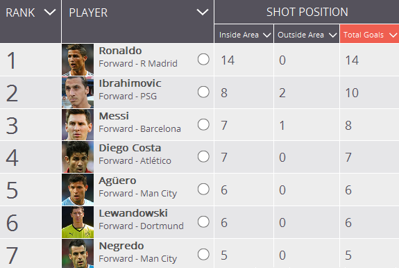 | Ronaldo hiện đang dẫn đầu danh sách làm bàn tại Champions League mùa này và gần như chắc chắn đoạt danh hiệu vua phá lưới khi bỏ rất xa những đối thủ đứng sau. |