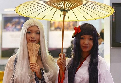 | Hai cosplayer (người phỏng lại theo các nhân vật trong truyện tranh, phim giả tưởng, game) chụp ảnh tại một hội chợ nhà ở được tổ chức tại Vô Tích, tỉnh Giang Tô. |