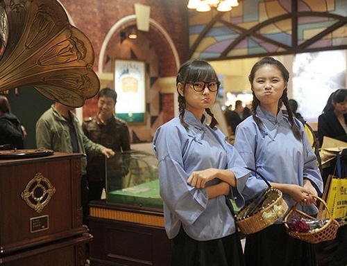| Những cô gái mặc đồng phục học sinh tặng hoa cho khách hàng tại một hội chợ nhà ở cũng được tổ chức tại Trùng Khánh. |