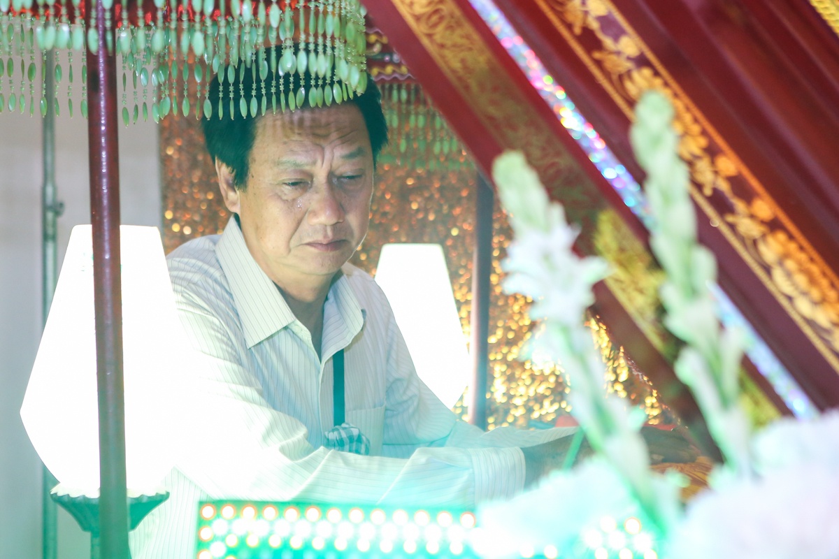 | Vì bận quay phim nên khoảng 21h, diễn viên Mai Huỳnh mới tới thắp hương cho đạo diễn mà anh yêu quý. Anh nghẹn ngào không giấu được nỗi đau xót, liên tục rơi nước mắt khi nhìn di ảnh của đạo diễn. |