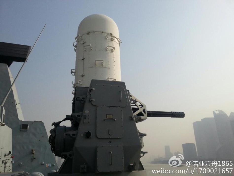 | Cận cảnh hệ thống phòng thủ tầm cực gần Phalanx CIWS 20 mm. Mỗi tàu khu trục Type-45 được trang bị 2 hệ thống này để đánh chặn tên lửa chống hạm và các mục tiêu đường không tầm thấp khác. Ảnh: Tuku.military.china |